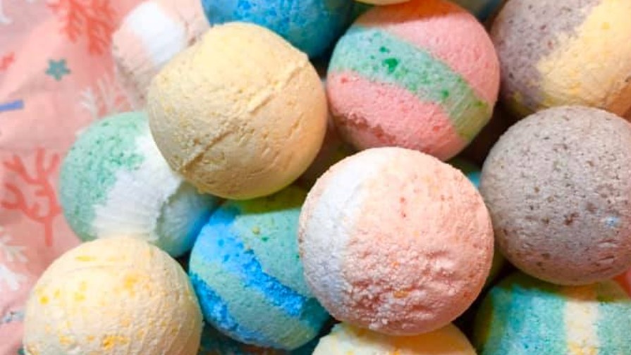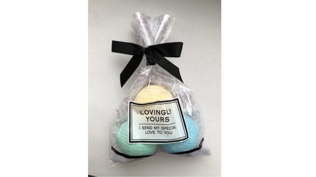 作ったバスボム(60分講座で1個、90分講座で2個)は持ち帰れます。